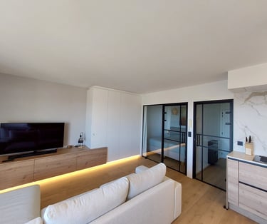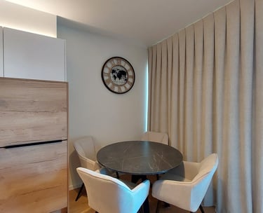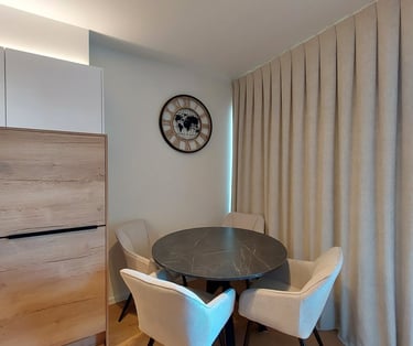 De studio is geschikt voor 3 volwassenen of 2 volwassenen en 1 kind. Je vindt er alles wat je nodig hebt voor een comfortabel verblijf: een volledig uitgeruste keuken, voldoende opbergruimte, en een badkamer met een luxe regendouche.